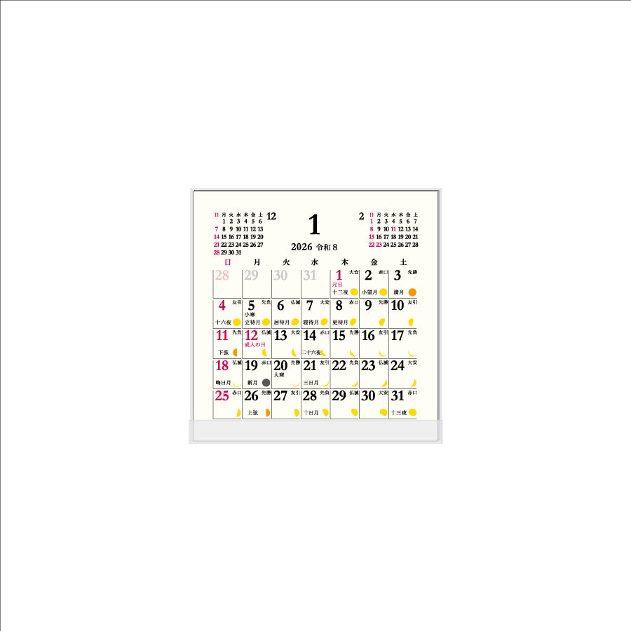 2026年 卓上カレンダー 1月始まり FD 月の満ち欠け CT-678