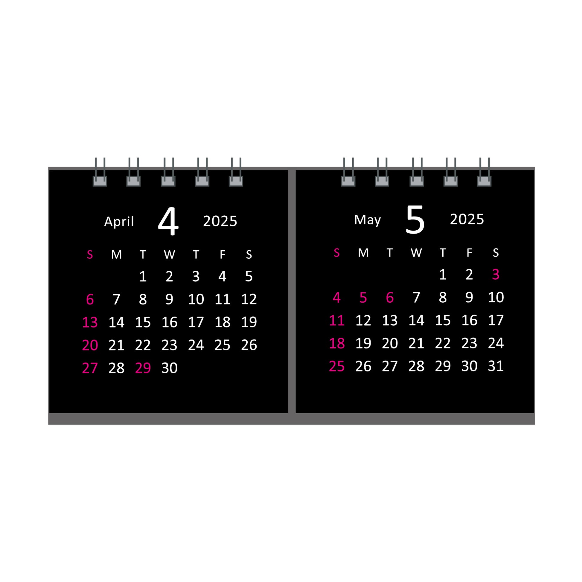 【NEW】2025年 卓上カレンダー 4月始まり タイニー2マンス ブラック CTN-621